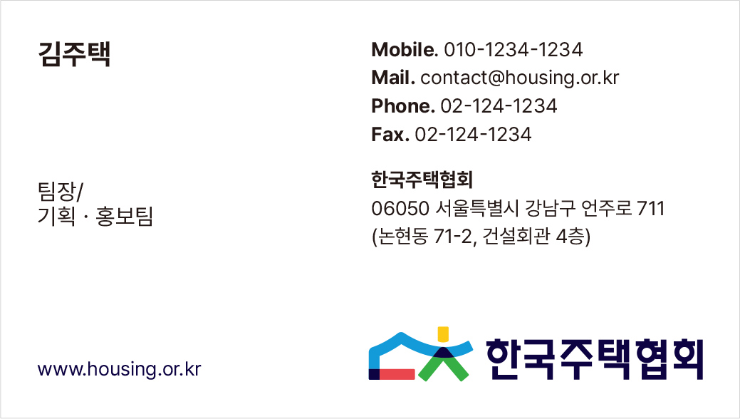 해당로고는 한국주택협회의 핵심가치인 주거복지와 사람중심의 철학을 시각적으로 통합한 디자인 입니다.