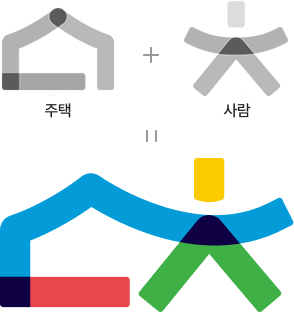 집의 형태와 사람의 형상을 결합하여 상호간의 유기적 관계를 직관적으로 표현하였으며, 협회가 지향하는 “더 나은 주거, 더 나은 삶”이라는 비전을 나타내고 있습니다. CI에 내재된 4가지 색상은 각각